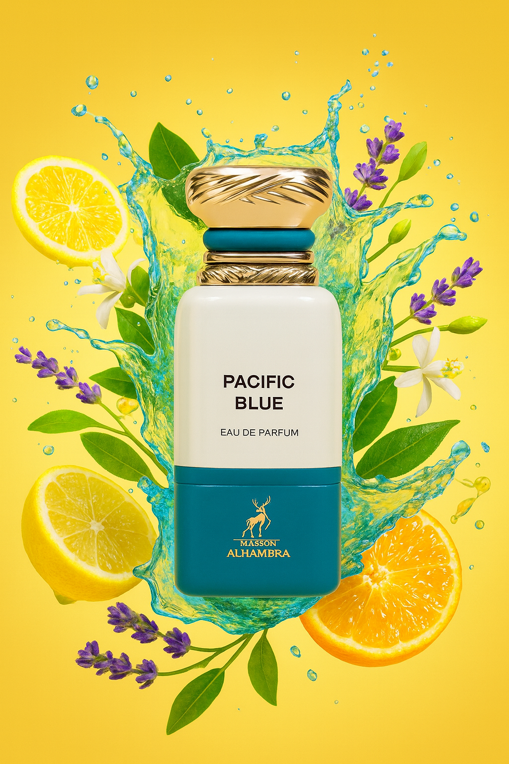Una brisa cítrica acariciando la piel al borde del Mediterráneo. Pacific Blue de Maison Alhambra, inspirado en el emblemático Neroli Portofino de Tom Ford, es una oda a la frescura solar, la elegancia relajada y la sofisticación costera. Una fragancia que evoca el azul profundo del mar, el resplandor del sol y la libertad de un verano eterno.